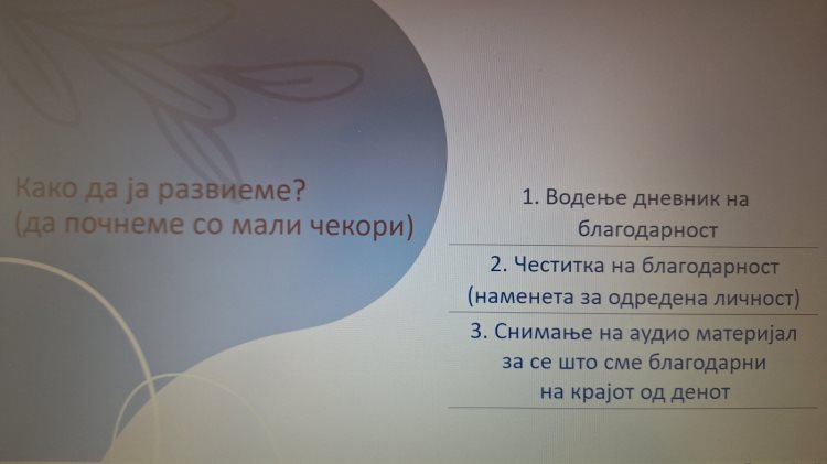 🧠 По повод Денови на психологија 2025, преку интерактивни активности и игра со ученици од I година реализиравме работилница на која разговаравме на тема: "Значајноста на благодарноста" како човекова вредност преку која: